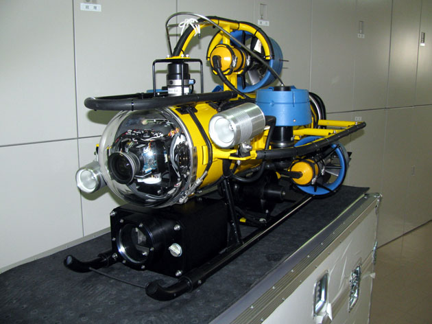 当センターは2009年3月に新しいROVを導入しました。ご存知の方も多いと思いますが、ROVはRemotely Operated Vehicleの略で水中テレビロボットなどと訳され、遠隔操縦により水中を自在に動き、搭載したテレビカメラで海底の状況や海中の構造物などを撮影します。この度導入した新しいROVは、これまで使用していたものよりも、推進力がアップし、潜降深度が深く、また、第二カメラとしてデジタルHDビデオカメラレコーダを搭載しています。これにより、これまでは調査ができなかった速い潮流のときや深い水深帯でのハイビジョン撮影が可能になりました。より精度と質の高い情報提供を目指したいと考えています。
