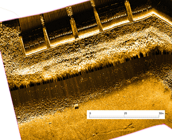 デジタル技術の急速な進歩により、性能の高いサイドスキャンソナー機種では、可視画像とほぼ同等な音響画像を得ることができ、船上においてリアルタイムに海底面の性状が確認できます。長崎支所では、昨年度より最新式のデジタル・サイドスキャンソナー(米国KLEIN社製System3000)を利用し、魚礁、増殖場、藻場、養殖場、定置網漁場、防波堤などで海底調査を行ってきました。さらに記録画像は前に紹介した海洋版GISを用いてデータベース化し、屋内・屋外(ノートパソコンに組込んでの船上利用)を問わずいつでも閲覧でき、位置誘導システム(GPS連動)としても作動できるよう機能強化を図っております。これは、従来の海洋調査の方法論を一新する可能性を秘めており、新しい時代の到来を感じさせるものです。「担当:漁場開発部(桑本)」